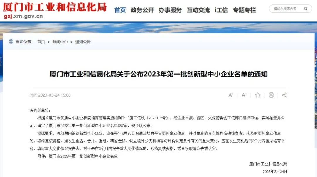 3月24日,,厦门市工业和信息化局公布本年度第一批创新型中小企业名单,,,,我公司成功入选。。