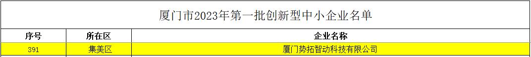 尊龙时凯智动入选厦门市第一批创新型中小企业名单